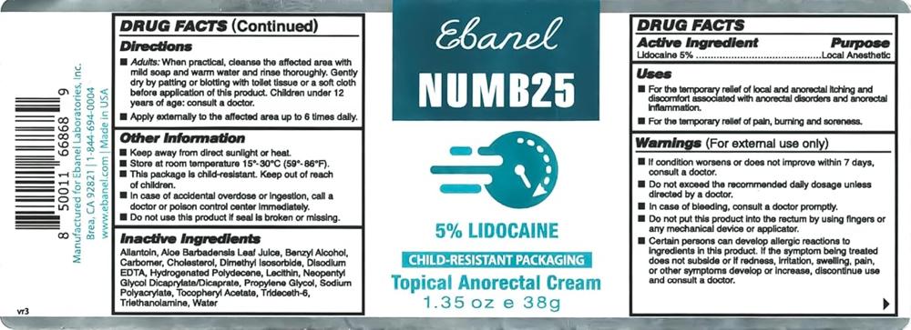 Ebanel 5% Lidocaine Numbing Cream, Pain Relief Burn Itch Numb Cream, Maximum Strength Topical Anesthetic with Allantoin, Vitamin E for Local and Anorectal Uses, Hemorrhoid Treatment, 1.35 Oz